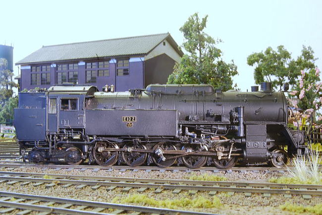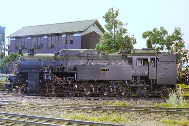 | 自作。動輪は同一形状の5軸をバランスウェートを変更、第二、第三をフランジレスに改造、 D52用を改造。米原時代の姿に制作。 制作 2011年 |